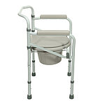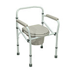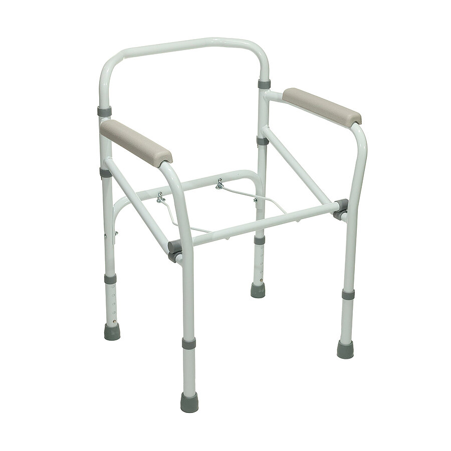 The BASIC folding commode chair is a practical solution for care settings. It can be used as a portable commode or as a raised toilet seat. Its sturdy chrome-plated steel frame supports up to 140 kg and is easy to clean. When not in use, it folds flat for convenient storage and transport - perfect for small spaces.