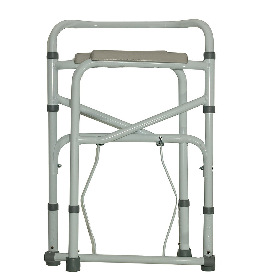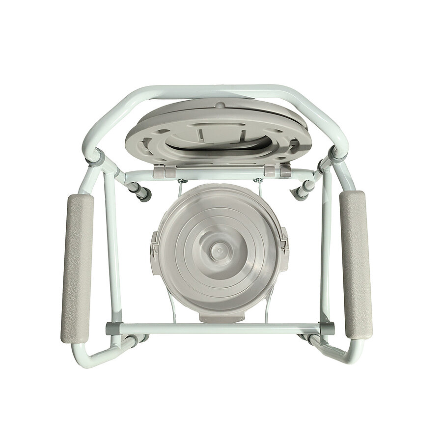Height-adjustable legs with non-slip rubber feet provide a secure, stable base on wet or uneven floors. Comfortable armrests and a removable commode bucket simplify daily care, making hygiene and handling easier for caregivers.