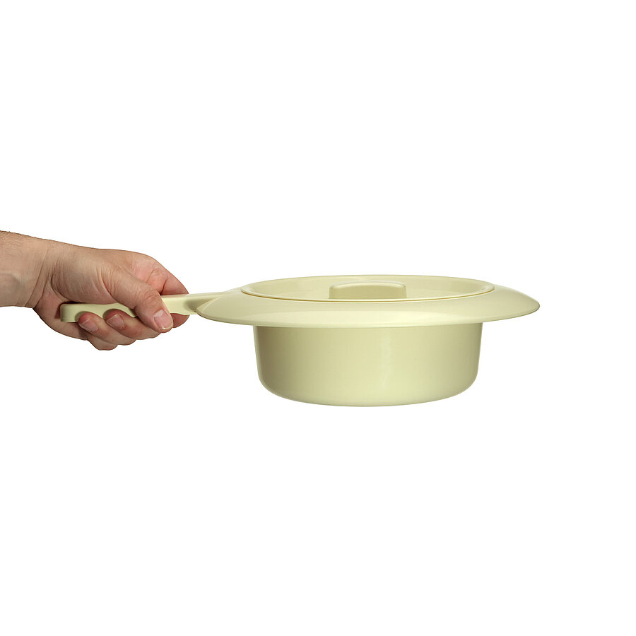 The Teqler bedpan with a diameter of 31 cm is made of hard-wearing plastic and can be autoclaved up to 130 °C, making it easy to clean and reuse. The included lid ensures hygienic handling. Ideal for hospitals, care homes and private use.