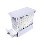 The hygienic dental roll dispenser ensures clean storage for dental cotton rolls of various sizes. It protects the rolls from moisture, dirt and contamination. Refilling is simple thanks to the hinged lid, and the dispenser operates on a first-in, first-out principle.