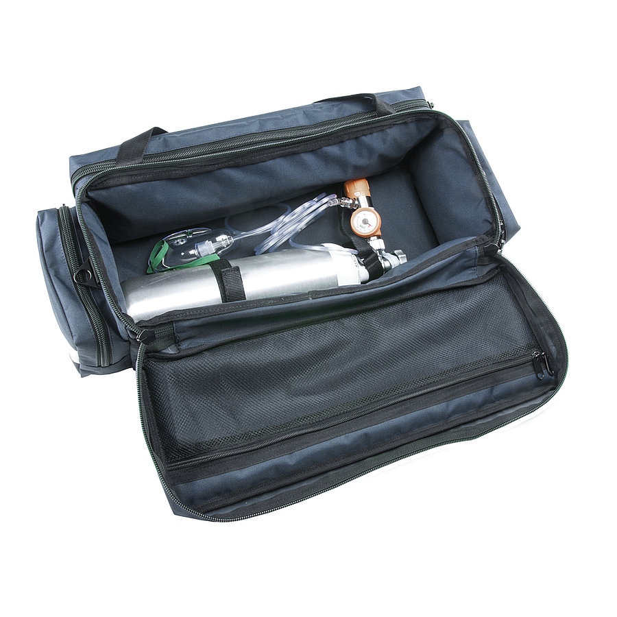 The “Gent” oxygen bag is made from water-repellent nylon material. It is designed especially for transporting oxygen tanks and tubes, and resuscitation bags.