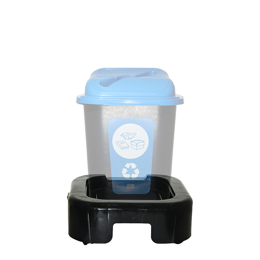 The waste bin roller is suitable as a stand and transport roller for the modular waste bins. The roller has 4 smooth-running castors and enables easy transport. With high rim for safe standing of the waste bin.