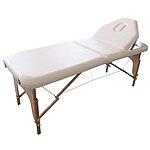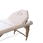 Extra strong upholstered massage table "Xiu Shan" with stable beech wood frame and adjustable back part. The removable padded part (face section) allows patients to be treated comfortably even in prone position.