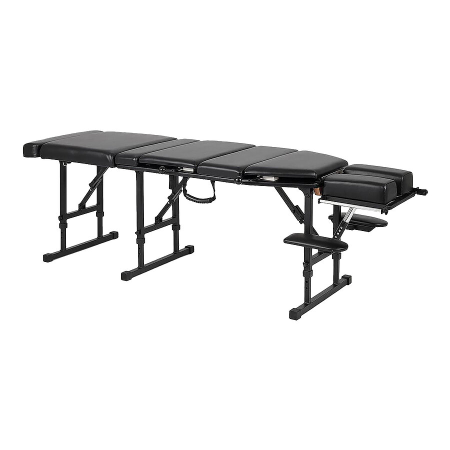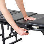 For precise chiropractic techniques, the couch features a straight pelvic and thoracic spine pressure drop with adjustable tension, allowing targeted mobilisation. The lightweight yet sturdy aluminium frame and foldable leg section make handling easy and add flexibility, making it ideal for both stationary and mobile use.