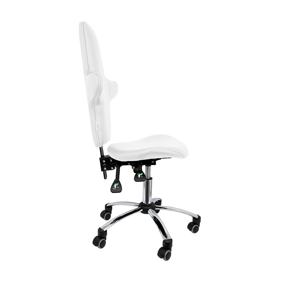 Particularly comfortable practice chair from Teqler with various adjustment options, high backrest and disinfectant-resistant artificial leather cover. Ideally suited for all medical areas.