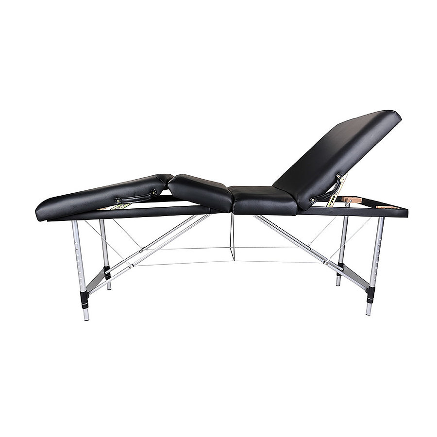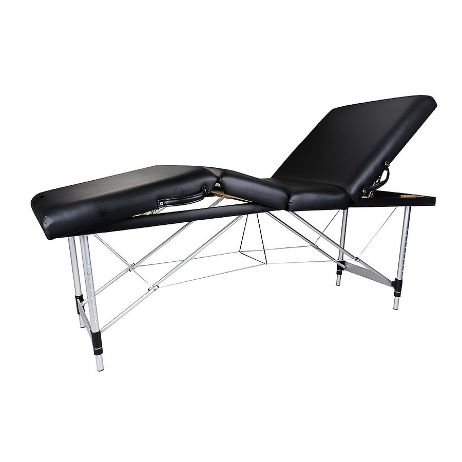 The «Jumeirah» table is characterised by comfortable upholstery and a 4-section surface which allows one to adjust the table specifically for the individual patient. Furthermore, the aluminium frame makes the table light and easy to transport when folded up and carried with the included bag.