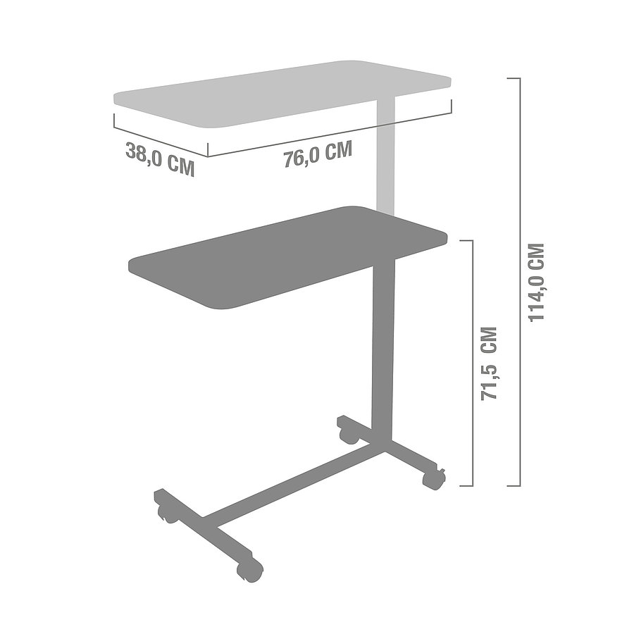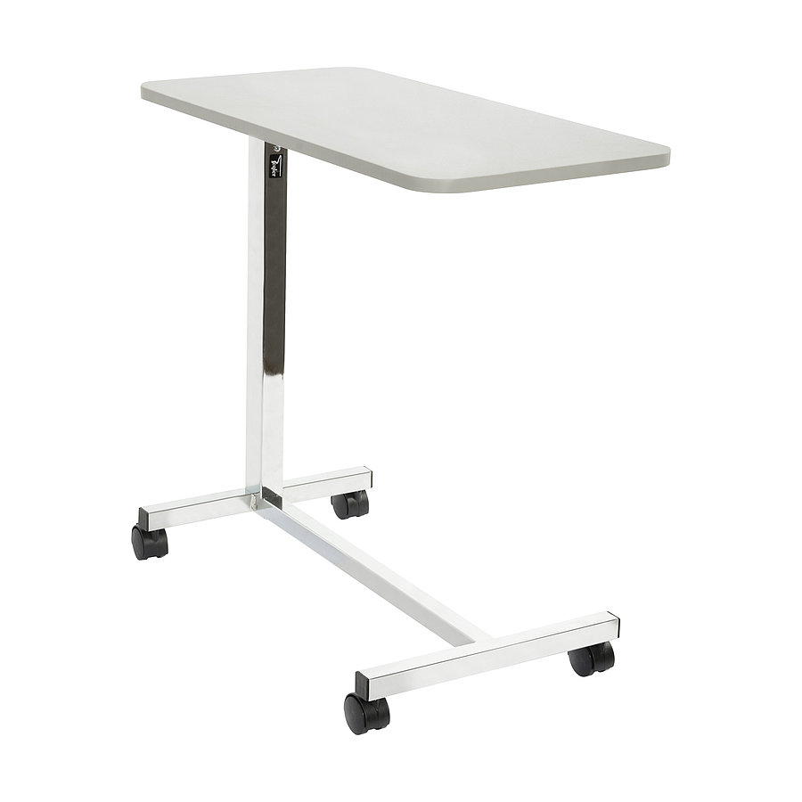 Practical overbed table with 76 x 38cm large tabletop and chromium-plated frame. Ideal for use as a nursing table for hospital beds, nursing homes and home care.
