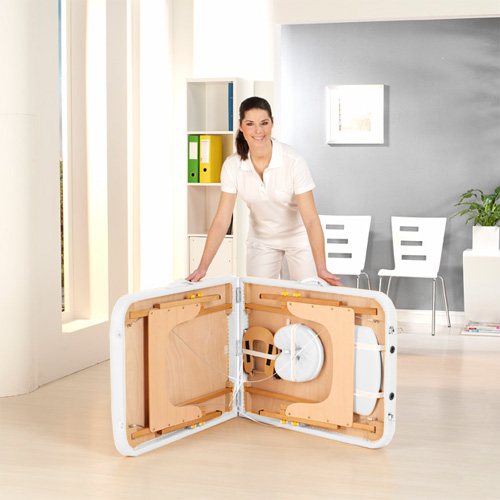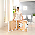 The portable massage table is suitable for performing massage or wellness treatments and can be folded to save space. Thanks to the low weight and the practical carrying handles, the massage table can be transported without much effort and is perfect for taking along on home visits and treatments outside the practice rooms.