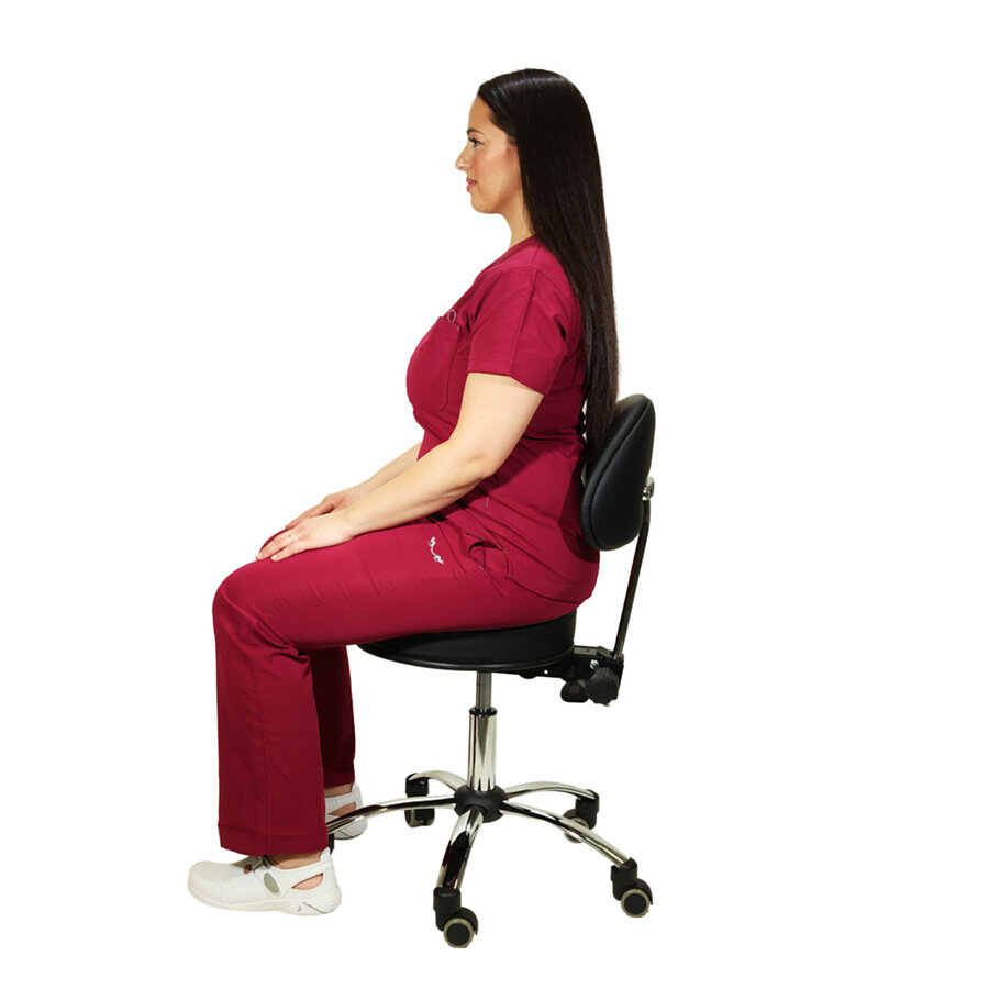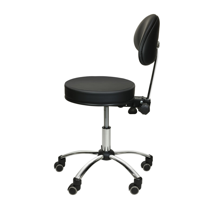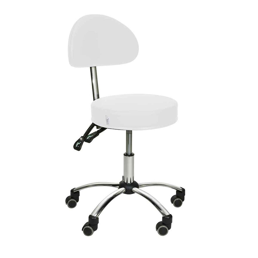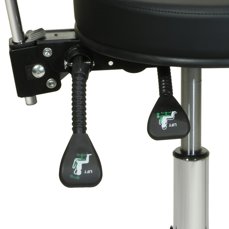 The rolling stool provides a well-padded seat with a supportive backrest. The stool's height can be infinitely adjusted from 46 to 56 cm. Both the height and the angle of the backrest are easily adjustable via the lever.