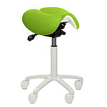 The saddle stool with a split seat and innovative design facilitates ergonomic work, easing strain on the back. The two-part seat can be tilted forwards and backward for flexible positioning. The infinitely variable height adjustment means the medical stool can be adapted to the user's height.
