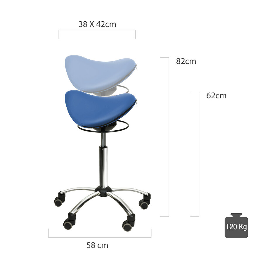 - Infinitely variable height adjustment from 62 - 82 cm (gas pressure spring)