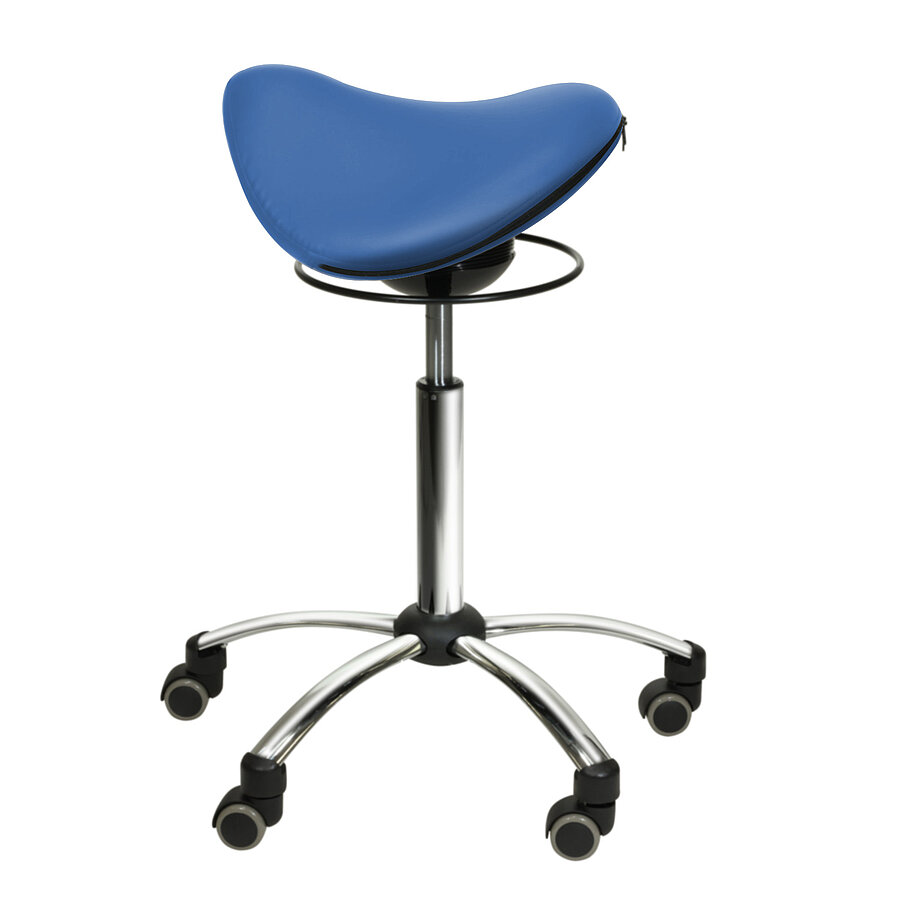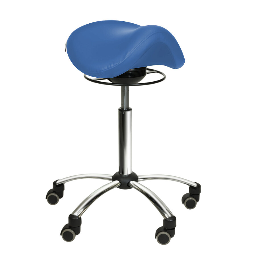 The spring-mounted saddle stool encourages active sitting and promotes an upright posture, alleviating pressure on both the pelvis and spine. With smooth-running castors, the stool can be easily moved around the treatment room. The rolling stool is available in a range of colours.