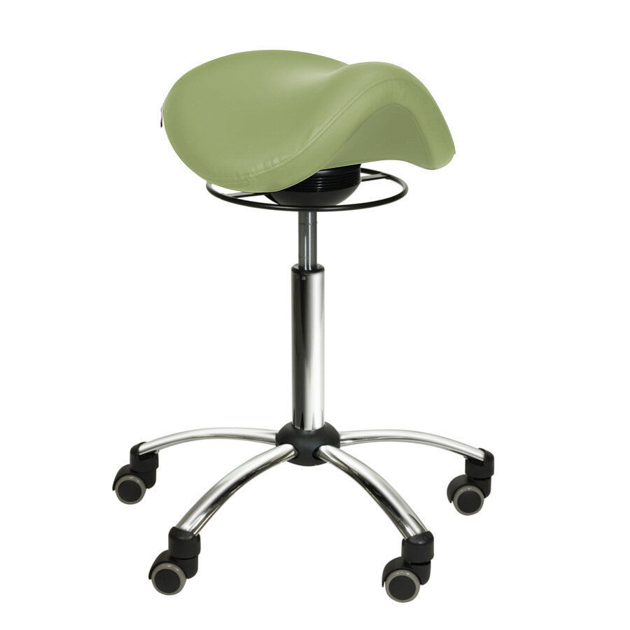 The spring-mounted saddle stool encourages active sitting and promotes an upright posture, alleviating pressure on both the pelvis and spine. With smooth-running castors, the stool can be easily moved around the treatment room. The rolling stool is available in a range of colours.