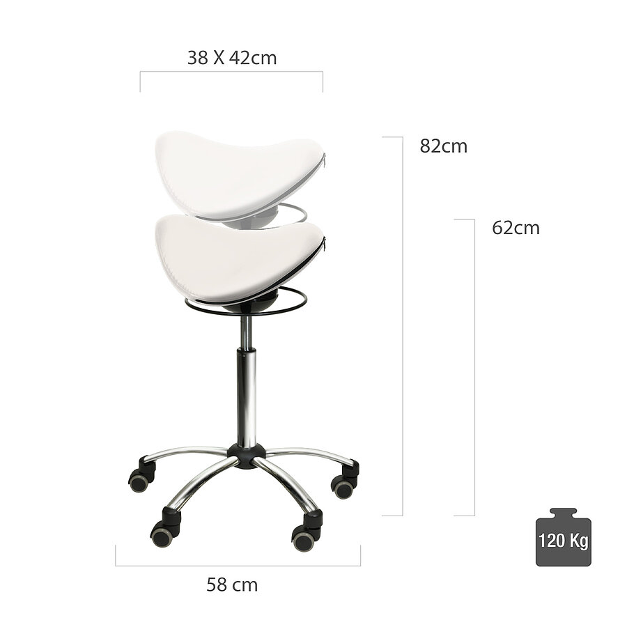 - Infinitely variable height adjustment from 62 - 82 cm (gas pressure spring)
