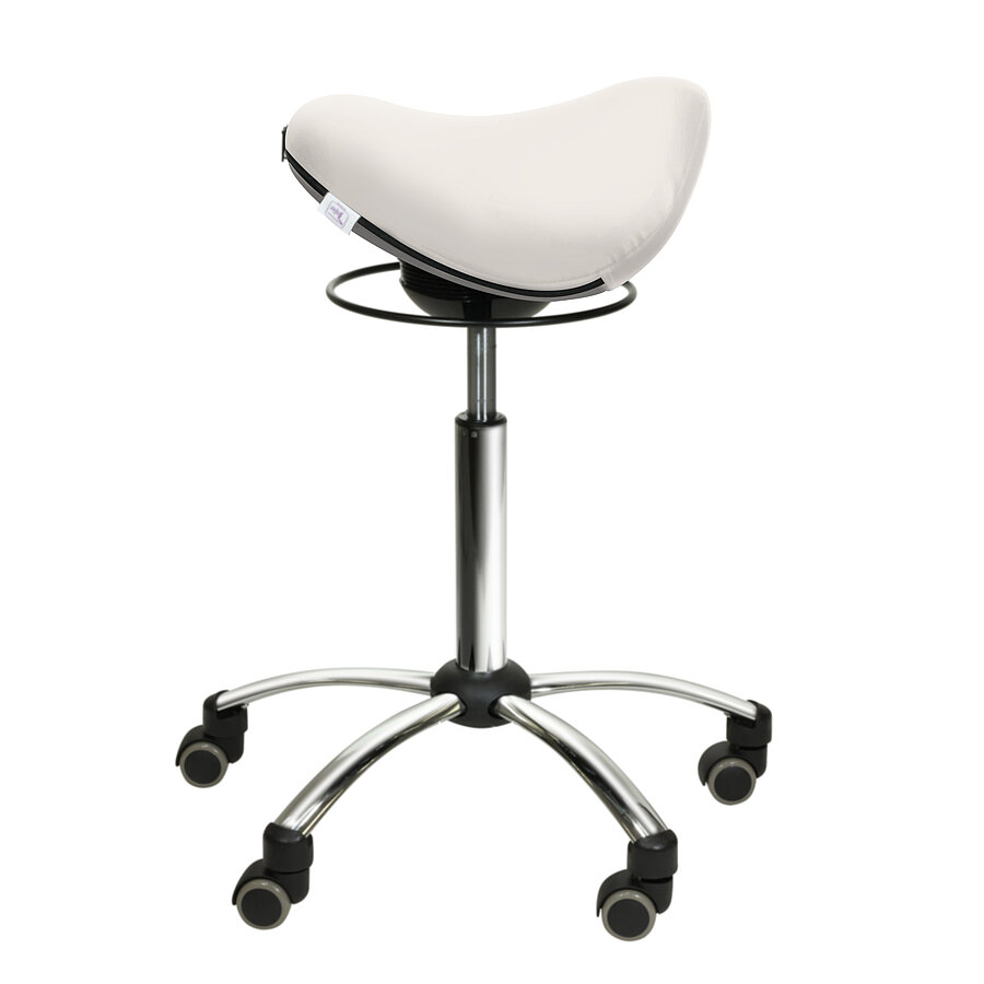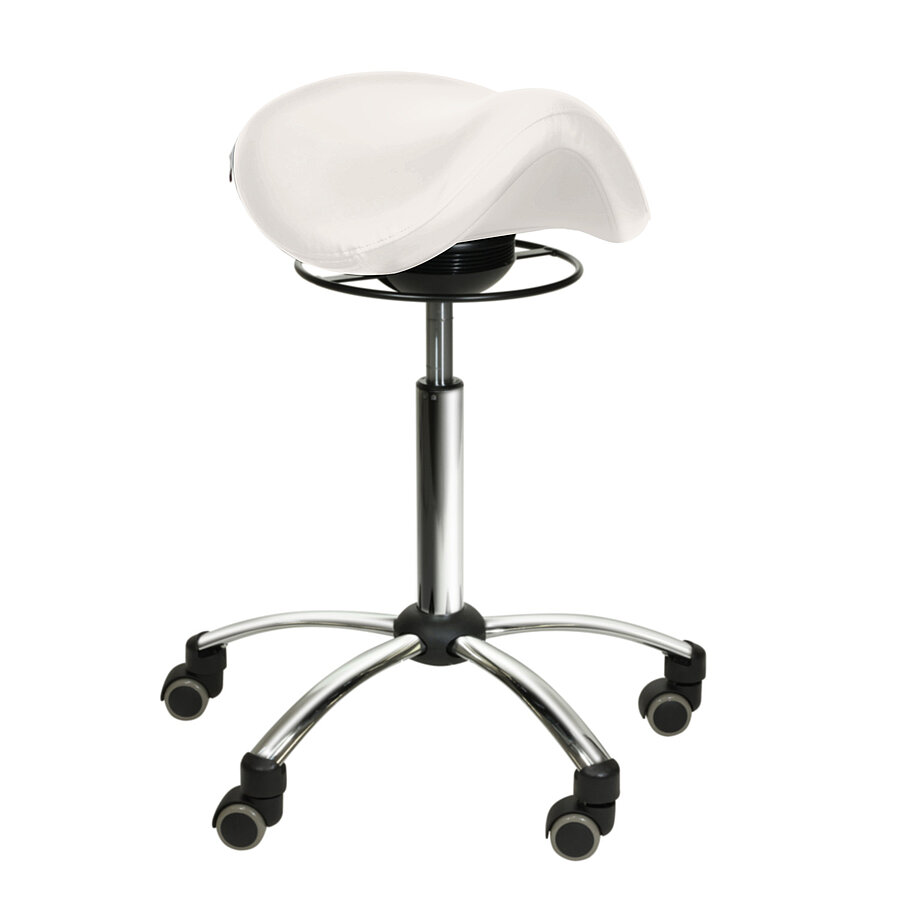 The spring-mounted saddle stool encourages active sitting and promotes an upright posture, alleviating pressure on both the pelvis and spine. With smooth-running castors, the stool can be easily moved around the treatment room. The rolling stool is available in a range of colours.