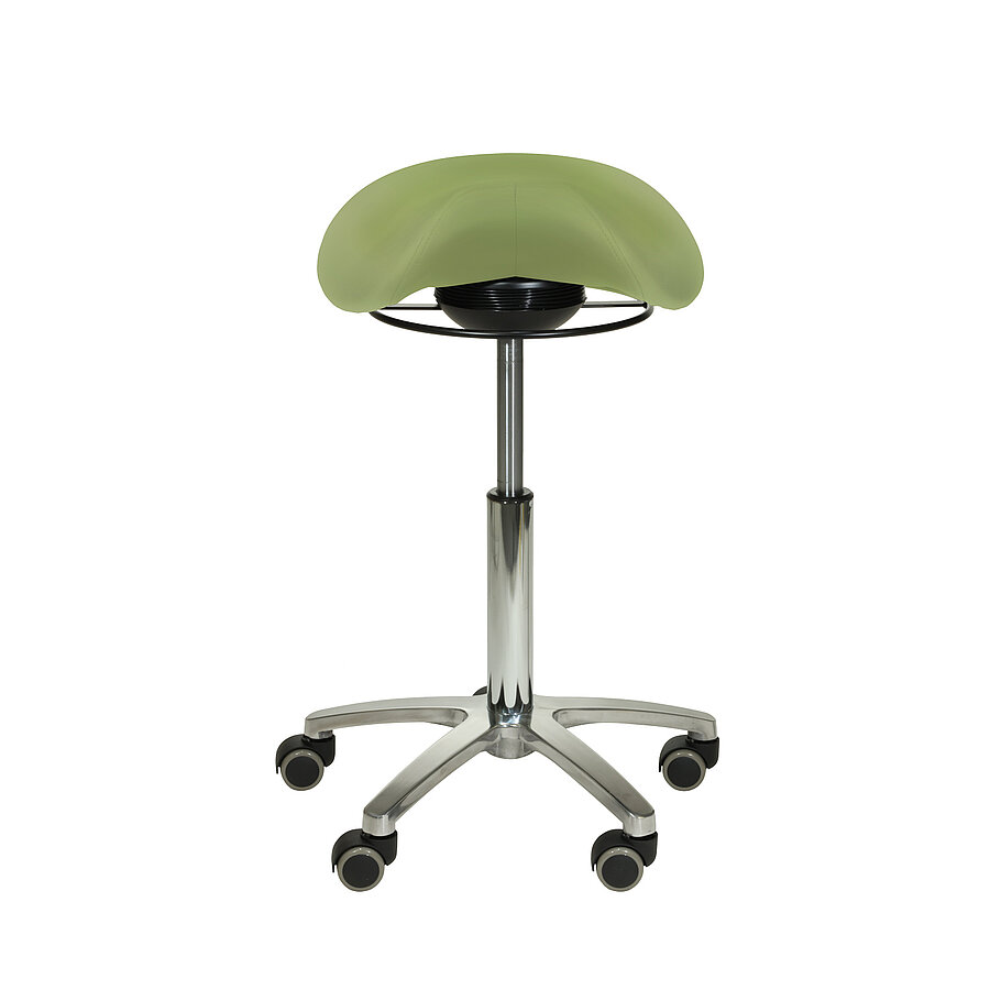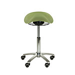 Thanks to its swing mechanism, the saddle stool from Teqler encourages an active sitting posture. The rolling saddle stool with ergonomic, undivided seat features continuous height adjustment via a black release ring. The soft upholstery, covered in easy-care imitation leather, adds to the overall comfort. With 5 smooth-running double castors designed for hard floors, this stool offers flexibility for use in medical practices.