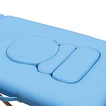 Special therapy couch for pregnant women, which enables treatment of pregnant women in prone position due to the removable padded parts in the breast and abdominal area. 9-fold height adjustment for back-friendly work on the couch.