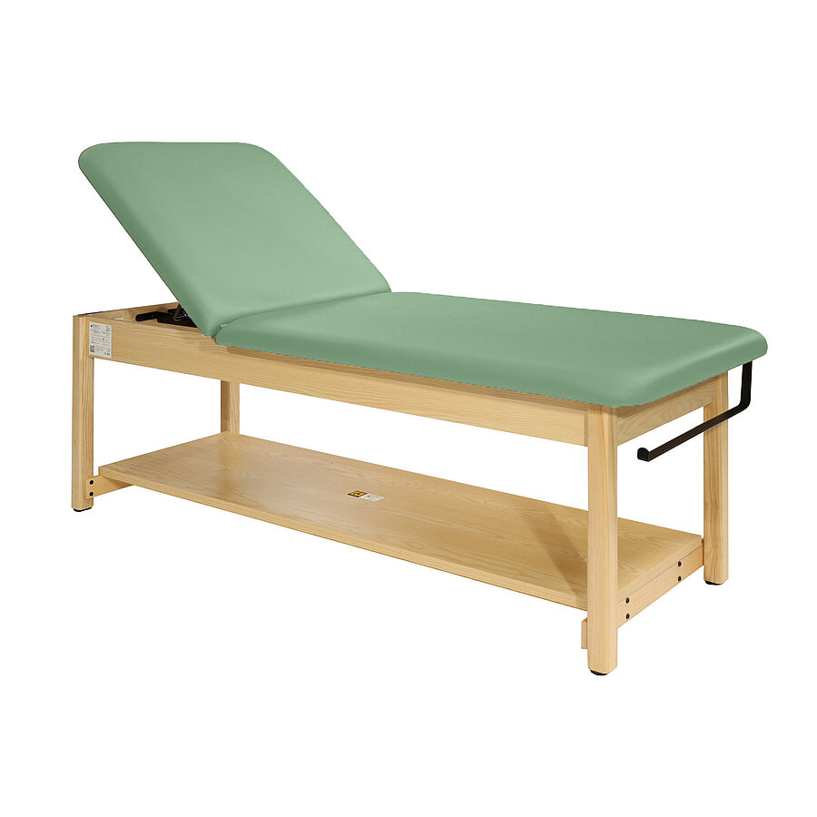 The Teqler wooden treatment table combines a sturdy wooden frame with an easy-to-clean imitation leather cover. Its generous lying surface, adjustable backrest and 227 kg load capacity ensure versatile use. A storage shelf and flexible paper roll holder add extra convenience.