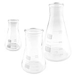 The Teqler Erlenmeyer flasks are made of borosilicate glass and are temperature and chemical tolerant, making them suitable for setting and mixing liquids in a medical laboratory.