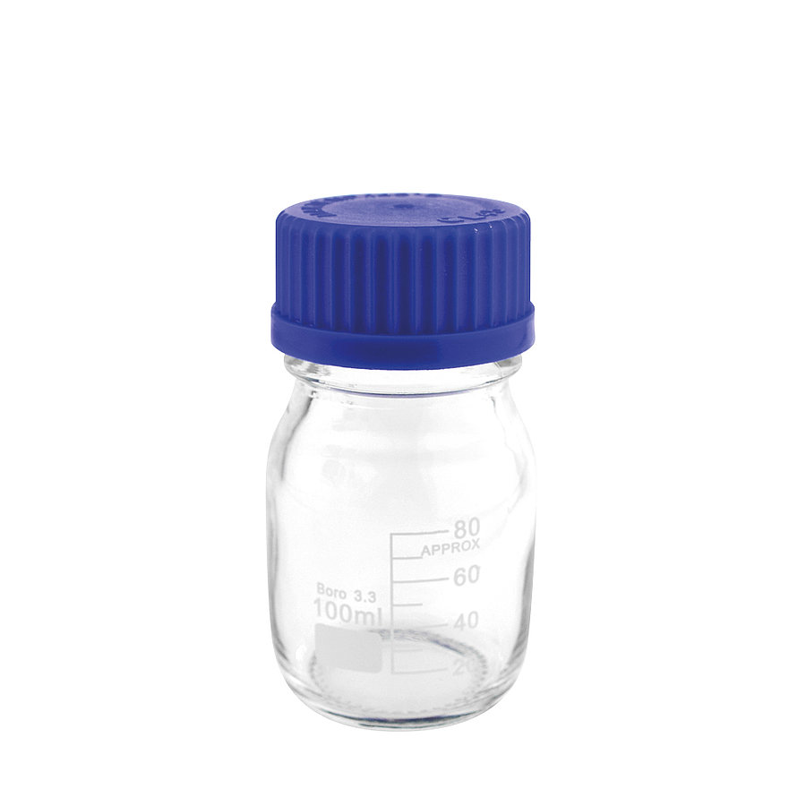 Teqler reagent bottle made of temperature and chemical resistant 3.3 borosilicate glass. Suited for storage as well as for setting and mixing solutions in the lab or practice. This glass reagent bottle is delivered with a pouring edge and a tightly sealing screw cap.