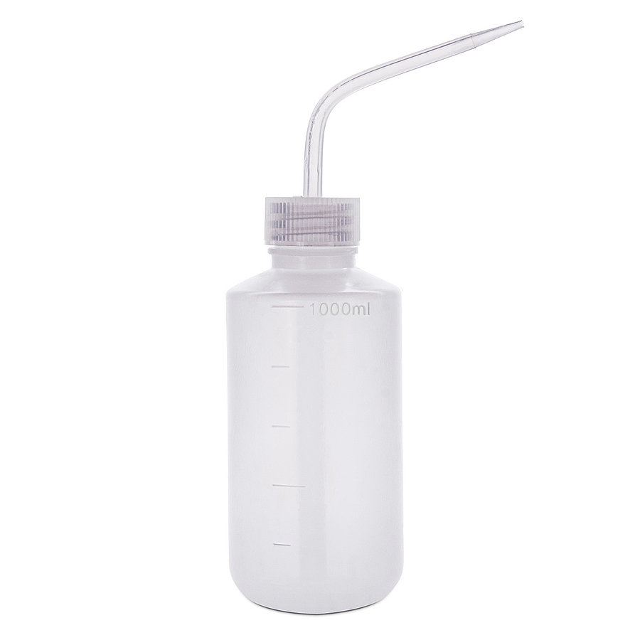 This wash bottle is semi-transparent with a white screw cap made of durable plastic. The use of flexible low density polyethylene (LDPE) allows one to squeeze the wash bottle and optimally dose the liquid.
