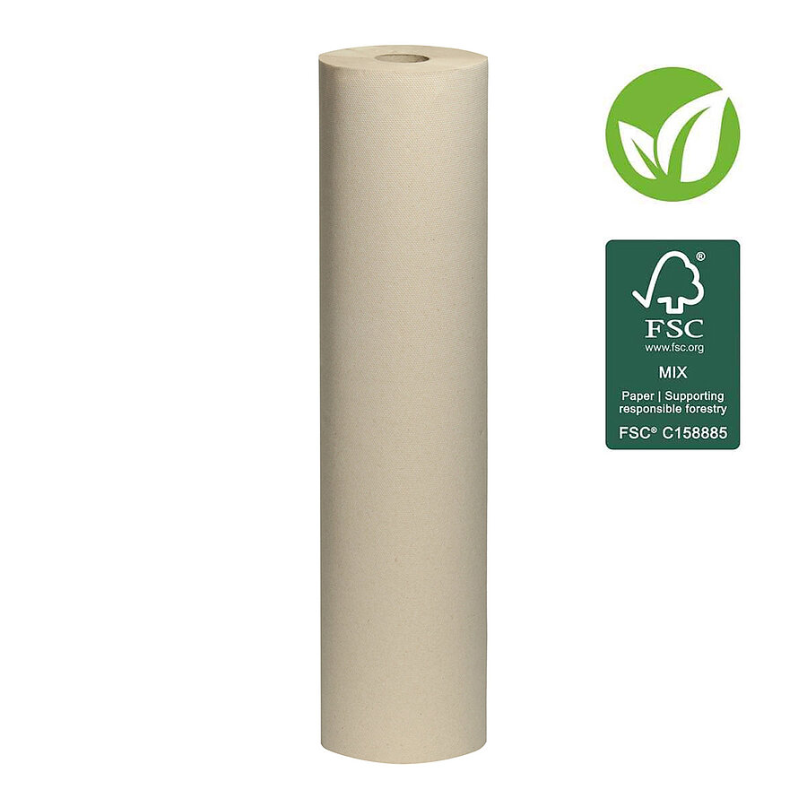 The Teqler ECO Couch Roll is a soft, 2-ply paper that is highly tear-resistant, perfect for covering examination couches. Made from 100% recycled Tetra-Pak beverage cartons, its eco-friendly production minimizes CO2 emissions and water usage while eliminating toxic substances. This FSC-certified paper comes in rolls that are 50 cm wide and 46 meters long, providing 135 sheets, each measuring 34 cm.