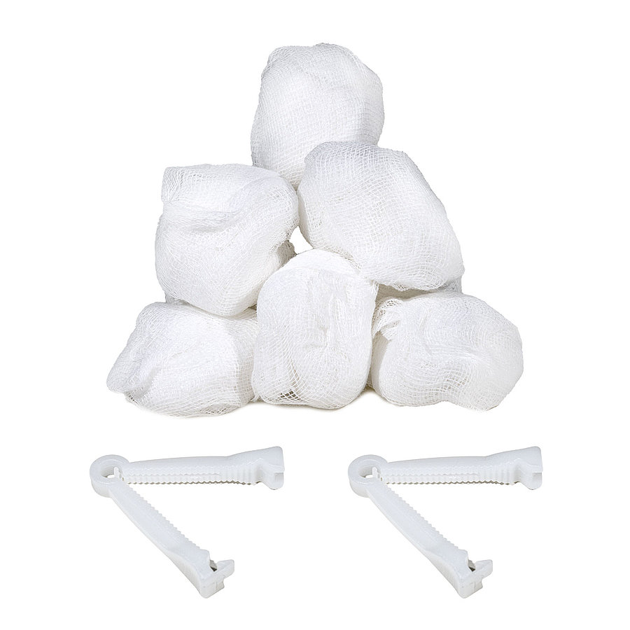 - 2 gauze compresses 10 x 20 cm, 12-fold