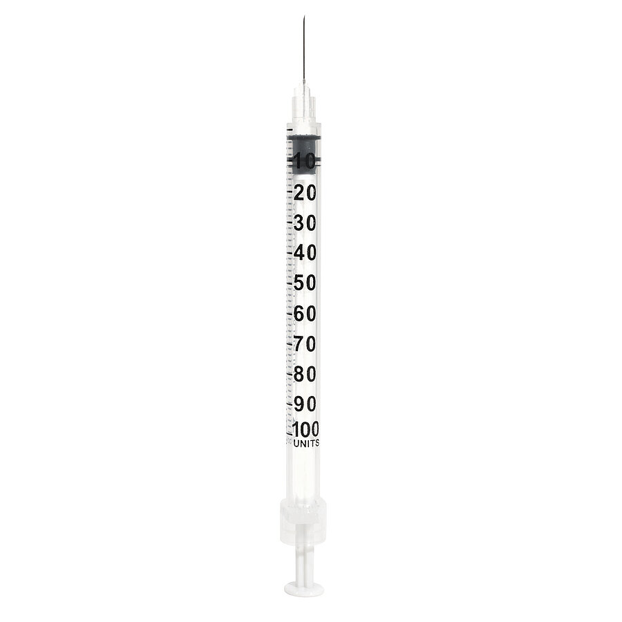 - Single-use insulin syringes with cannula (0.33 x 13 mm)