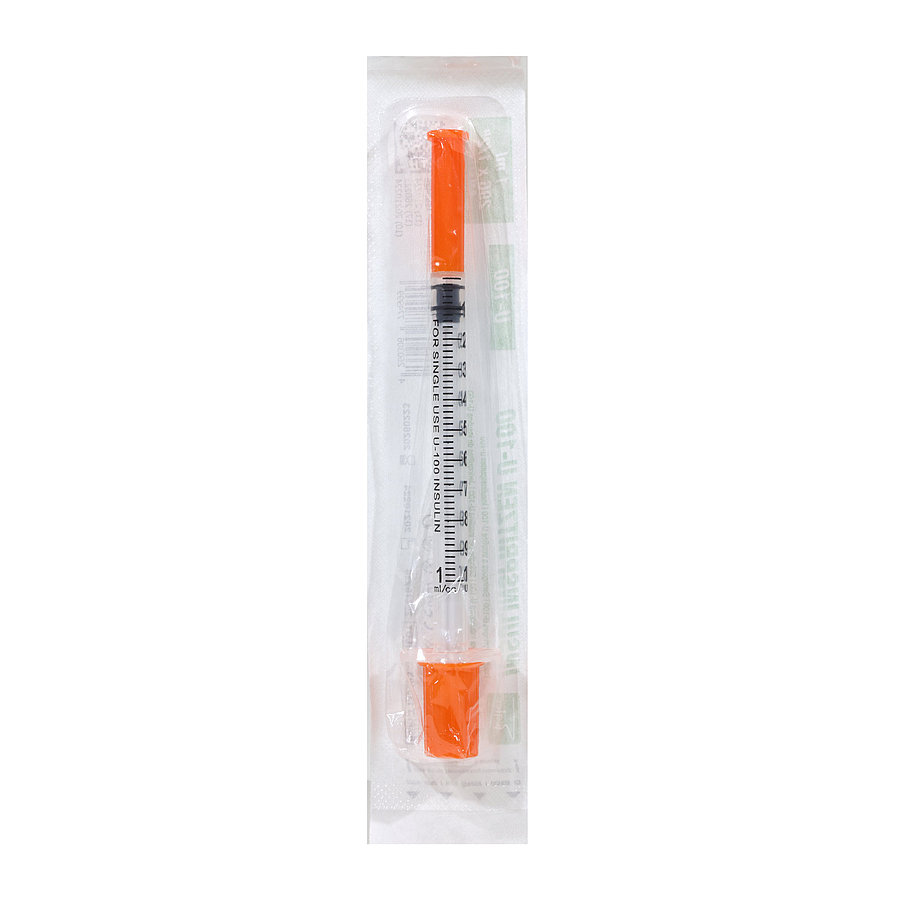 - Single-use insulin syringes with cannula (0.33 x 13 mm)