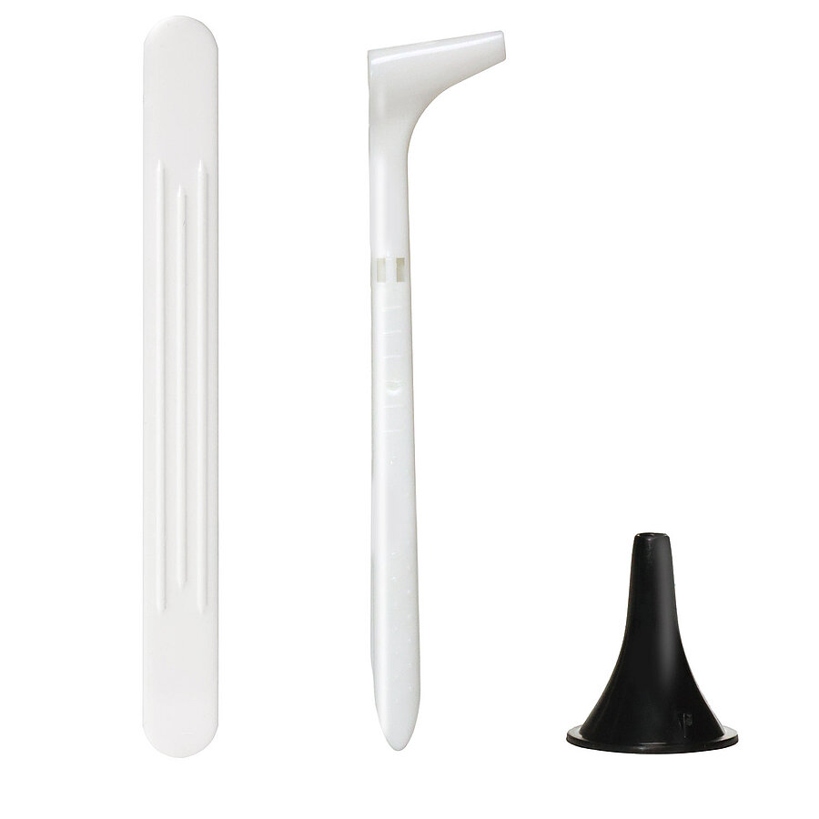 - Set contents: Nasal speculum, ear speculum, tongue depressor