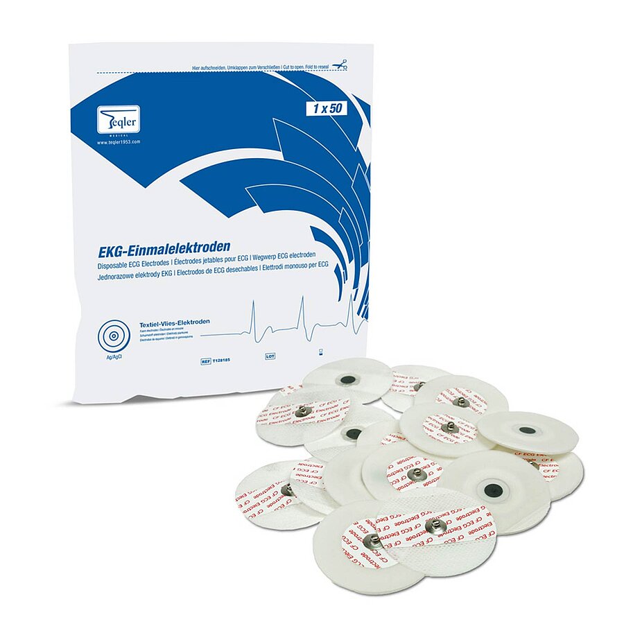 The Teqler disposable fleece ECG electrodes are particularly skin-friendly and to be used with button adapters.