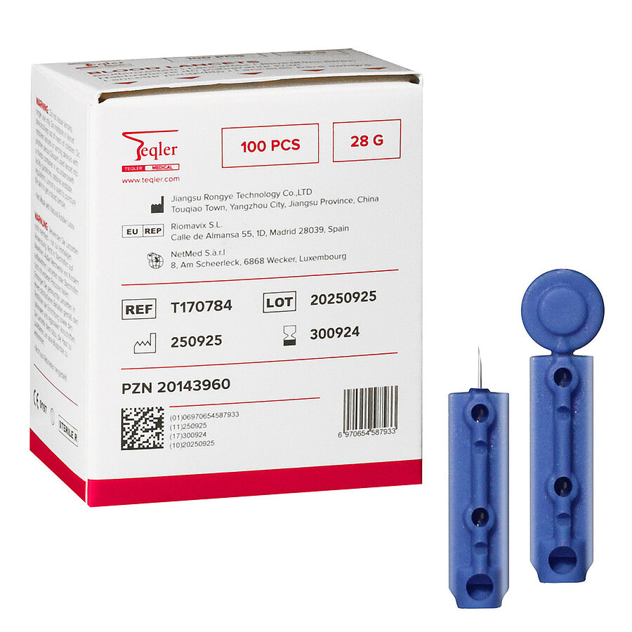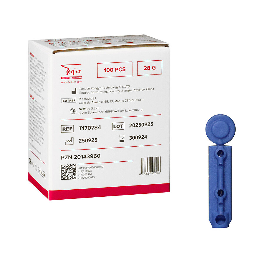 Lancets are sterile, single-use needles specifically designed for hygienic and low-pain blood sampling. With a fine 28 G needle, they allow for precise blood collection with minimal discomfort – ideal for daily use in medical practices, clinics, and care facilities.