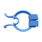 The disposable nasal clamp is made of a blue plastic material and has foam pads that make it comfortable to wear during treatment. Nasal clamps are used during spirometry (lung function testing) to prevent air leakage through the nose.