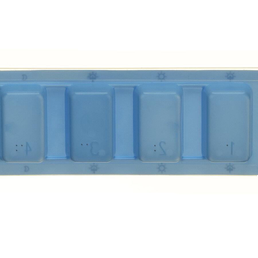 The pill organiser, with separate compartments for morning, noon, evening, and night, is a helpful tool for medication management in care facilities, hospitals, and for personal use.The transparent sliding lid enables easy identification of which medication has been taken, which proves particularly helpful when managing multiple medications throughout the day.