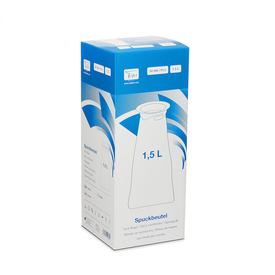 The tear-resistant and hygienic sick bags with sturdy plastic opening and scale markings are ideal for collecting vomit. The single-use design ensures a minimal risk of cross-contamination.
