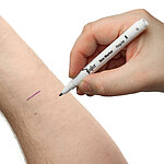 These sterile skin markers w/ruler are ideal for marking the skin before surgical procedures. The ink is long-lasting, abrasion-resistant and both non- allergenic and non-irritating. It can be easily removed with disinfectant containing chlorhexidine. The ruler is sterile and can be used to measure areas such as nevi or similar skin changes.