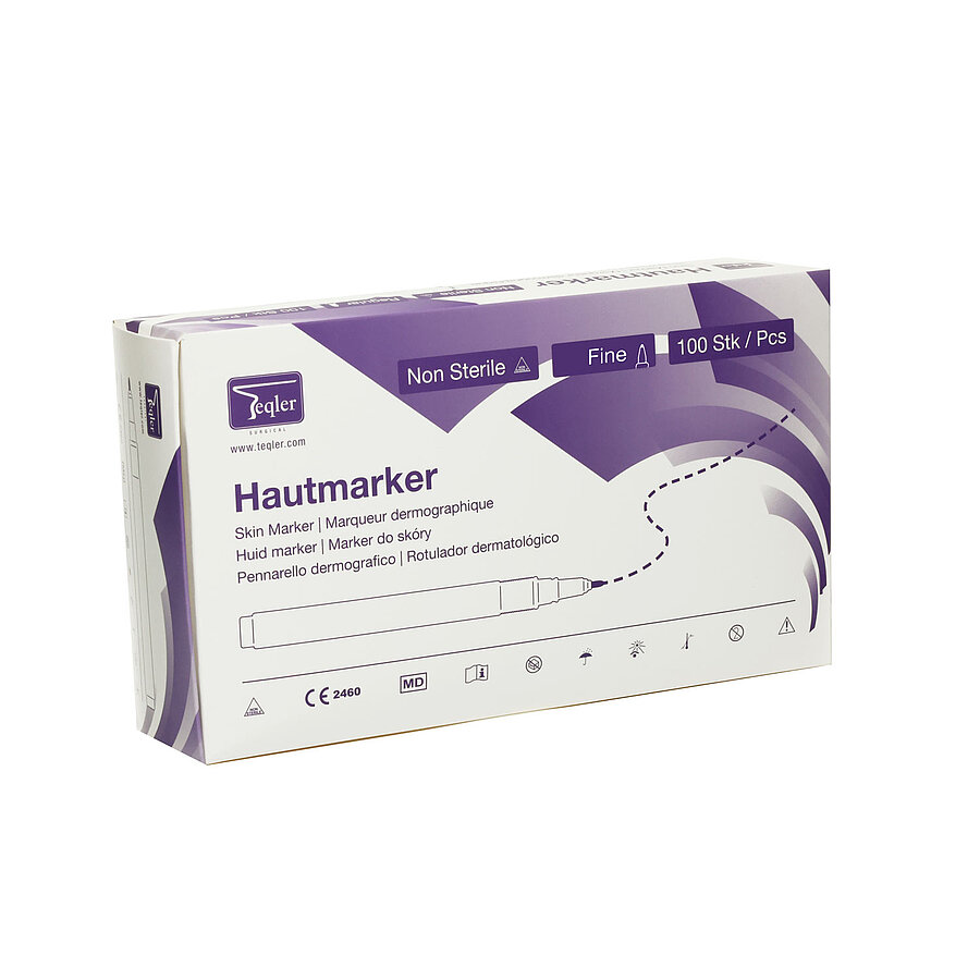The non-sterile surgical skin marker is a long-lasting, abrasion-resistant skin pen designed for marking the skin before surgical procedures. The purple ink is non-allergenic, non-irritating and odourless.