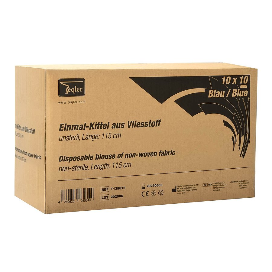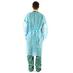 The Teqler single-use gowns made from PP fleece are equipped with ties to close at the neck and back. The one-size-fits-all gowns are sub-packaged in packs of 10.