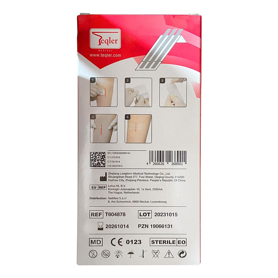 The butterfly stitches are suitable for the safe and quick closure of minor cuts or lacerations. The wound closure strips can also be used as an alternative to sutures or staples, as the risk of scarring is reduced.