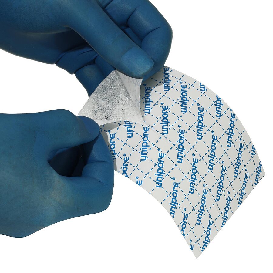 - Transversely elastic fixation fleece with skin-friendly adhesive