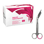 The scissors come on a backing card in sterile, individual packaging with a documentation label to ensure complete record-keeping. After use, the scissors can be disposed of in a sharps bin. The bandage sccissors are available in a practical dispenser box with 25 scissors.