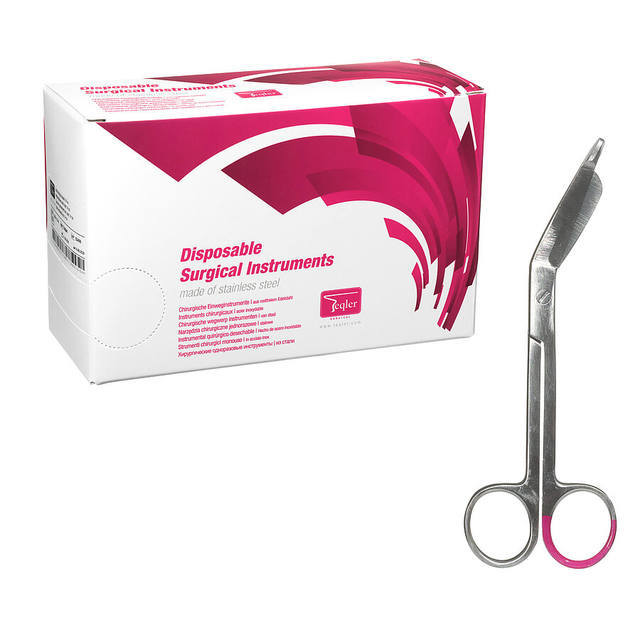 The Lister bandage scissors (14 cm) are made of high-quality, stainless steel with a brushed matt surface to prevent glare and reflections in the operating theatre. They are clearly labelled as a single-use instrument to prevent confusion with reusable instruments. No reprocessing is required, saving time, costs and resources.