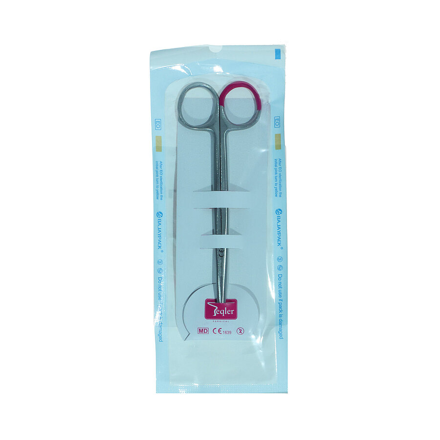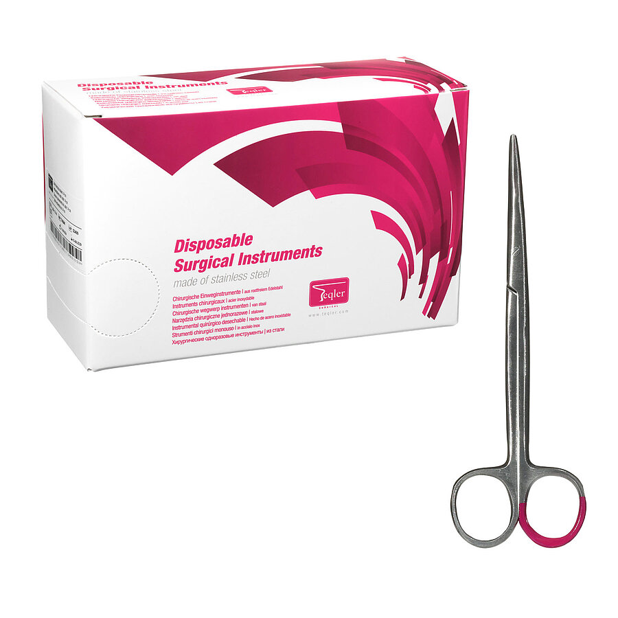 The Metzenbaum scissors (14 cm) are made of stainless steel and designed for single-use in surgery. Their matte, non-reflective surface minimizes glare, aiding precision. Clearly labelled as single-use, they prevent mix-ups with reusable scissors and reduce cross-contamination risk. With a 3-year sterile shelf life and individually packaged in a dispenser box of 25 pieces, they are cost-effective and resource-efficient.