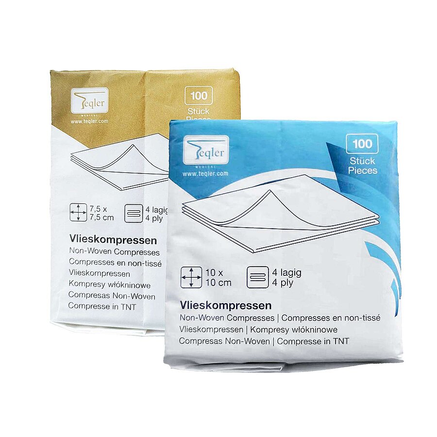 The non-sterile non-woven dressings are made of soft, skin-friendly fabric. They are ideal for wound care, especially for managing exuding or infected wounds. The material is highly absorbent and breathable. In addition, it does not stick to the wound. It also helps to promote wound healing and effectively retains wound exudate. The non-woven dressings are available in different sizes.