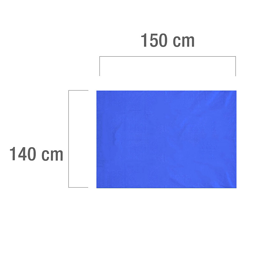 The reusable surgical drape is made of 100 % cotton and can be washed up to 95 °C and autoclaved. It is also suitable for tumble drying and is colourfast. The drape has neatly hemmed edges all around and is available in various sizes and colours.