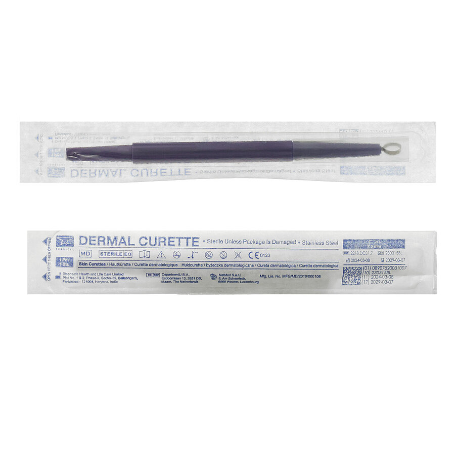 - Ready-to-use skin curettes