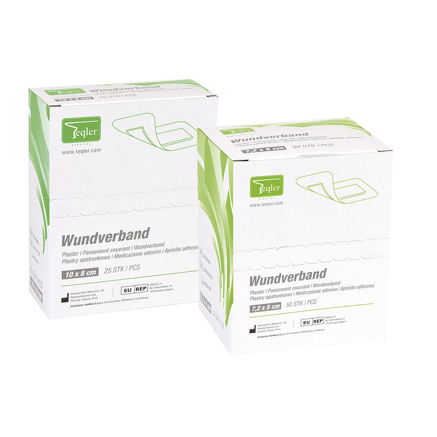 The sterile plaster from Teqler has a centrally positioned wound cushion to provide good coverage and optimally protect the wound from contamination. A hydrophobic micro mesh prevents the plaster from sticking to the wound; thus, providing a painless dressing change. Available in two different sizes.
