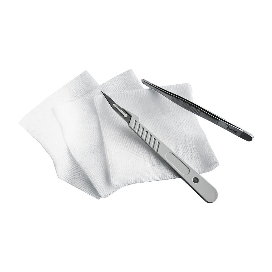 - 3 gauze compresses, 8-ply, 10 x 10 cm
