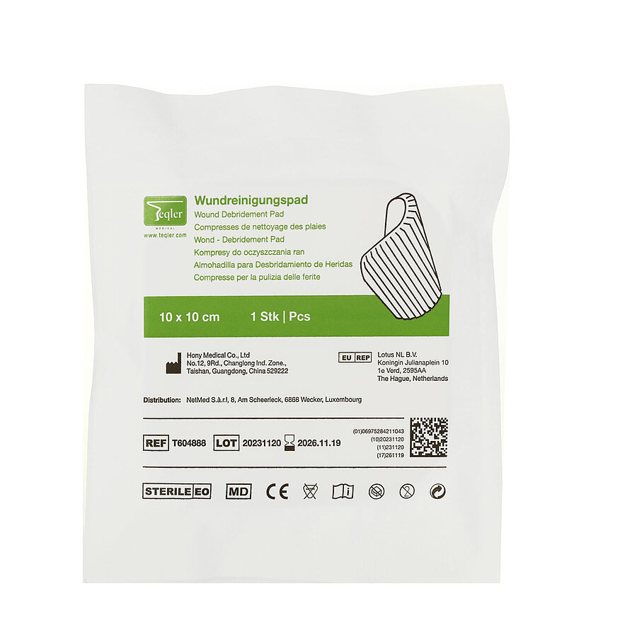 The wound debridement pads feature soft, grooved foam with a semi-rigid polyethylene backing, and are designed for gentle wound cleansing. The soft foam surface allows for efficient removal of necrotic coatings, wound coverings and incrustations while absorbing wound exudate. The size and shape of the pads makes them effective for cleaning both small and larger wounds, including wound pockets. It is best used after soaking in sterile saline solution or wound irrigation solution for optimal performance.