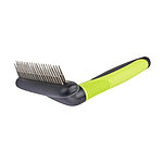 The pet brush with movable long and short conical prongs loosens tangles in the coat particularly gently and reliably removes the undercoat. The ergonomically shaped, rubberised and ribbed handle ensures comfortable handling and enables comfortable use.